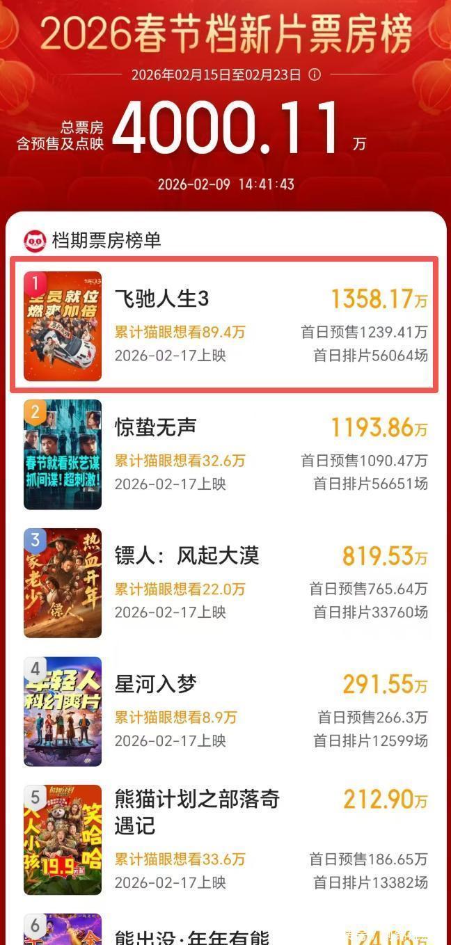 春节档预售一开,韩寒的《奔驰东谈主生3》径直杀疯了!首日预售冲到1800多万,把张艺谋的《惊蛰无声》和吴京的《镖东谈主:风起大漠》皆甩在了死后,稳稳坐上面把交椅。