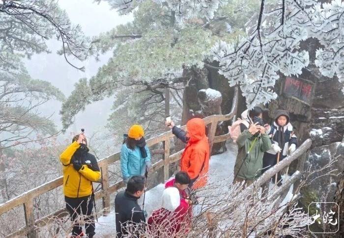 大皖新闻讯 12月20日晚,黄山空闲区再迎降雪。雪花纷繁洋洋飘落,为冬日的群山披上银装,将整座山装点成一派静谧而虚幻的冰雪瑶池。12月21日,私有的冬日山景蛊惑了广阔旅客前来游览体验。