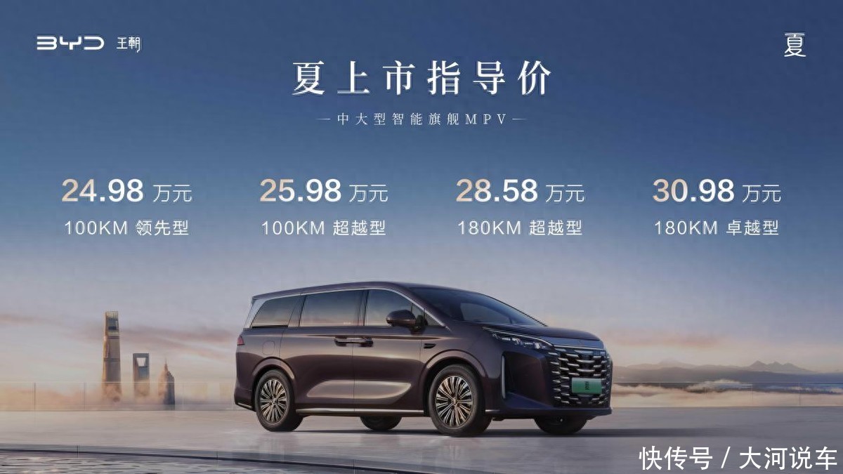 1月8日晚,北京水立方,一款可能蜕变MPV商场款式的新车——比亚迪夏谨慎上市。定位于中大型智能旗舰MPV,夏共有4款确立,售价为24.98万—30.98万元。