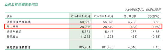 从效果来看,本年上半年,邮储银行职工用度为280.36亿元,同比减少4.83亿元,下跌1.69%。
