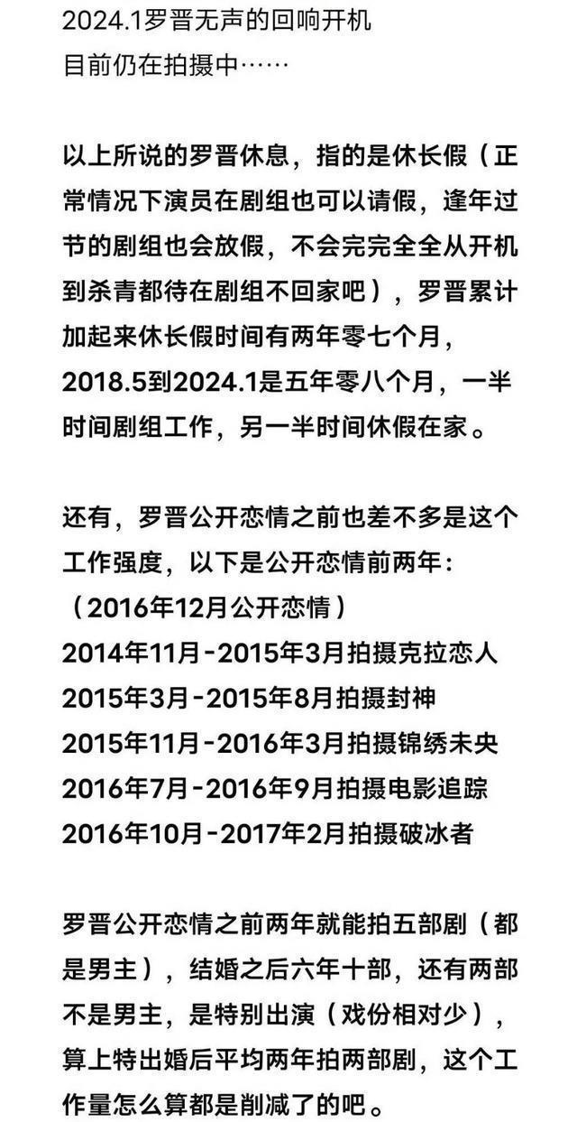 以至在家庭最需要罗晋的时候,他亦然要跑到离上海很远的剧组拍戏。 不仅莫得随同夫人,以至还缺席了孩子最遑急的三年,月旦他当丈夫当父亲皆不尽职。 反不雅唐嫣,在眷注孩子的那段时分,还塑造出了“汪密斯”这个经典脚色。 彰着,梳理出这篇行程表的网友,对罗晋抱有很大的宗旨。