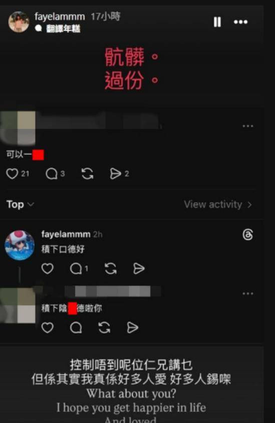 另外,林霏儿还曾公开在其外交网上,叱咤对她性骚扰的网民。据林霏儿披露,她收到他东说念主的低俗笔墨,对方的话语相配露骨。