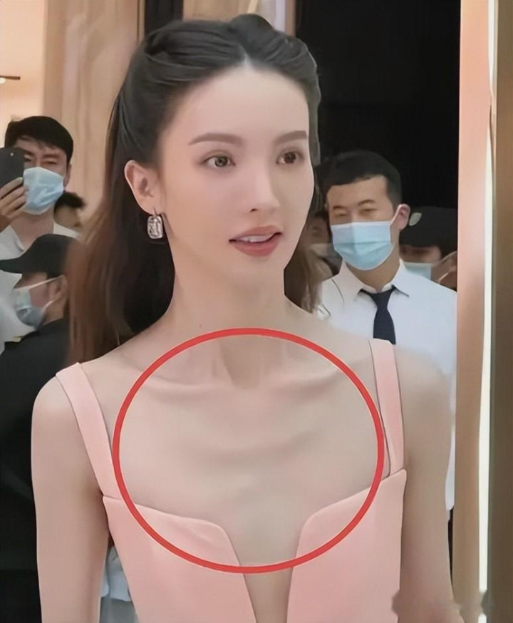 肋骨、锁骨都戳得高高的,完全没了镜头里那种充足的好意思感。