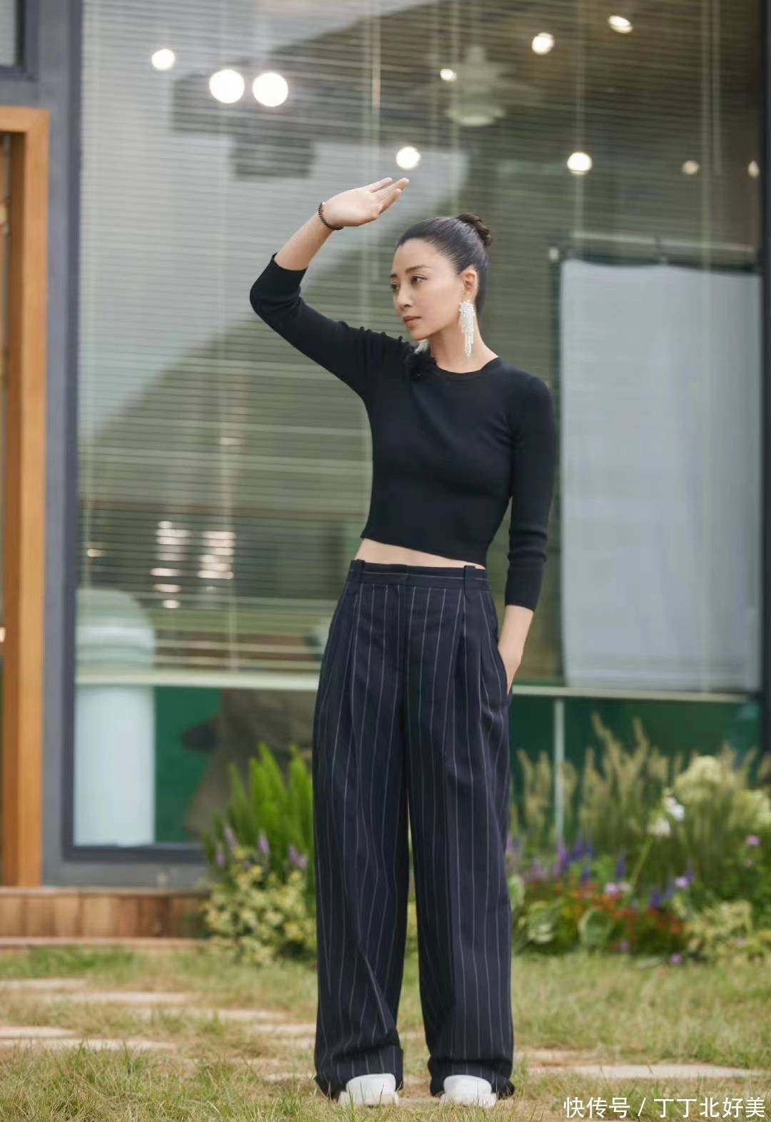 玄色的打底衫配上一条阔腿裤,这么的穿搭气象也不错有用地改善咱们的比例,并且这种竖条纹的阔腿裤缱绻更独到,比鄙俚的纯色阔腿裤看上去更先锋,显瘦增高恶果翻倍!
