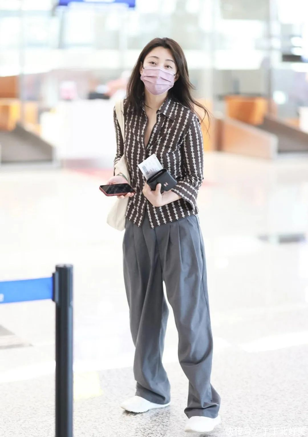 先锋界的潮水老是不断变化,但有些单品却能齐人好猎,其中就包括阔腿裤。而殷桃的穿搭作风,则给咱们展示了一种独到的搭布气象,那等于不将阔腿裤与吊带搭配,而是遴荐与之颠倒的衬衫,从而打造出一种愈加高等洋气的作风。
