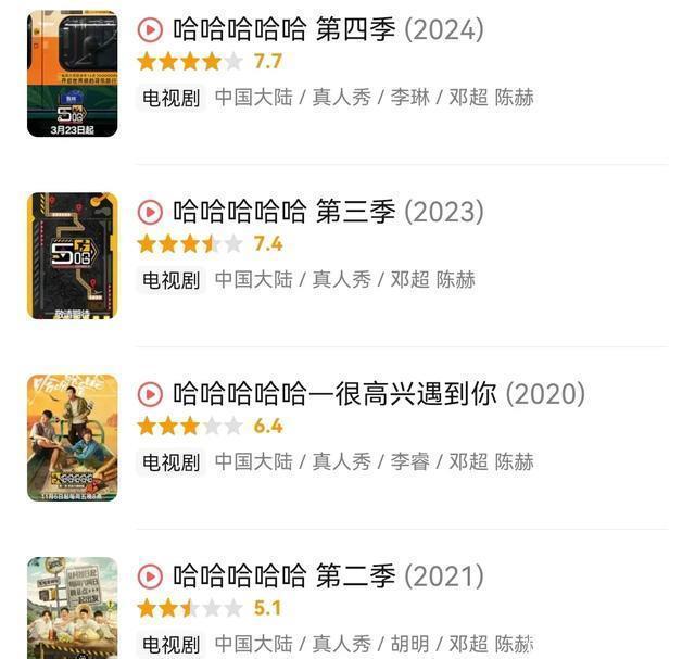 《五哈》一共录制了5季,前四季的不雅众评分为 6.4、5.1、7.4、7.7 ,除了第二季除外,其他几季评分齐在6分以上,但我最可爱第一季。