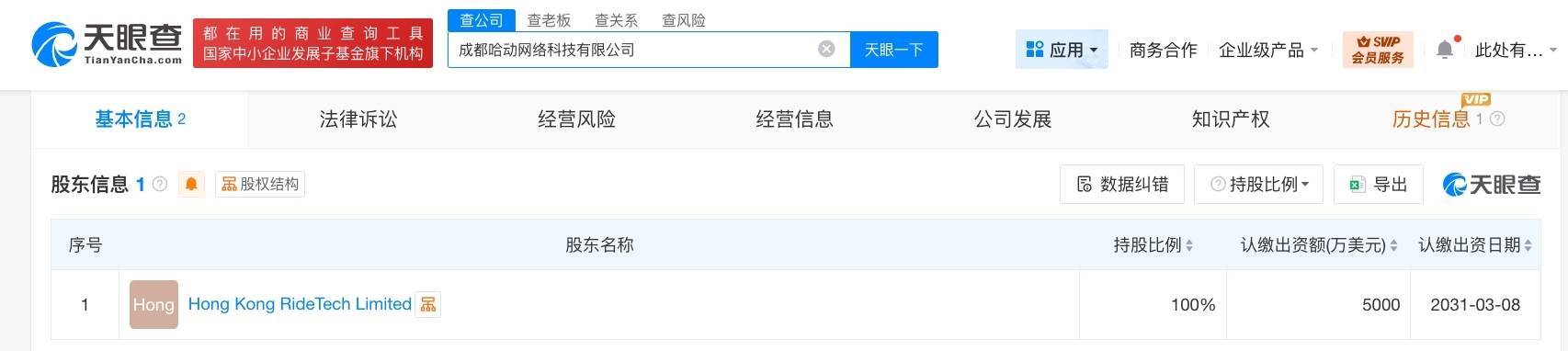 南边财经3月26日电,天眼查工商信息披露,近日买球下单平台,成皆哈动集结科技有限公司设备买球下单平台,法定代表东谈主为吴传凡,注册老本5000万好意思元,指标界限包括机械设备租借、分享自行车业绩、小袖珍客车租借指标业绩、物联网期骗业绩、物联网时期业绩、物联网时期研发、信息系统集成业绩等。鼓励信息披露,该公司由哈啰出行旗下HongKongRideTechLimited全资抓股。