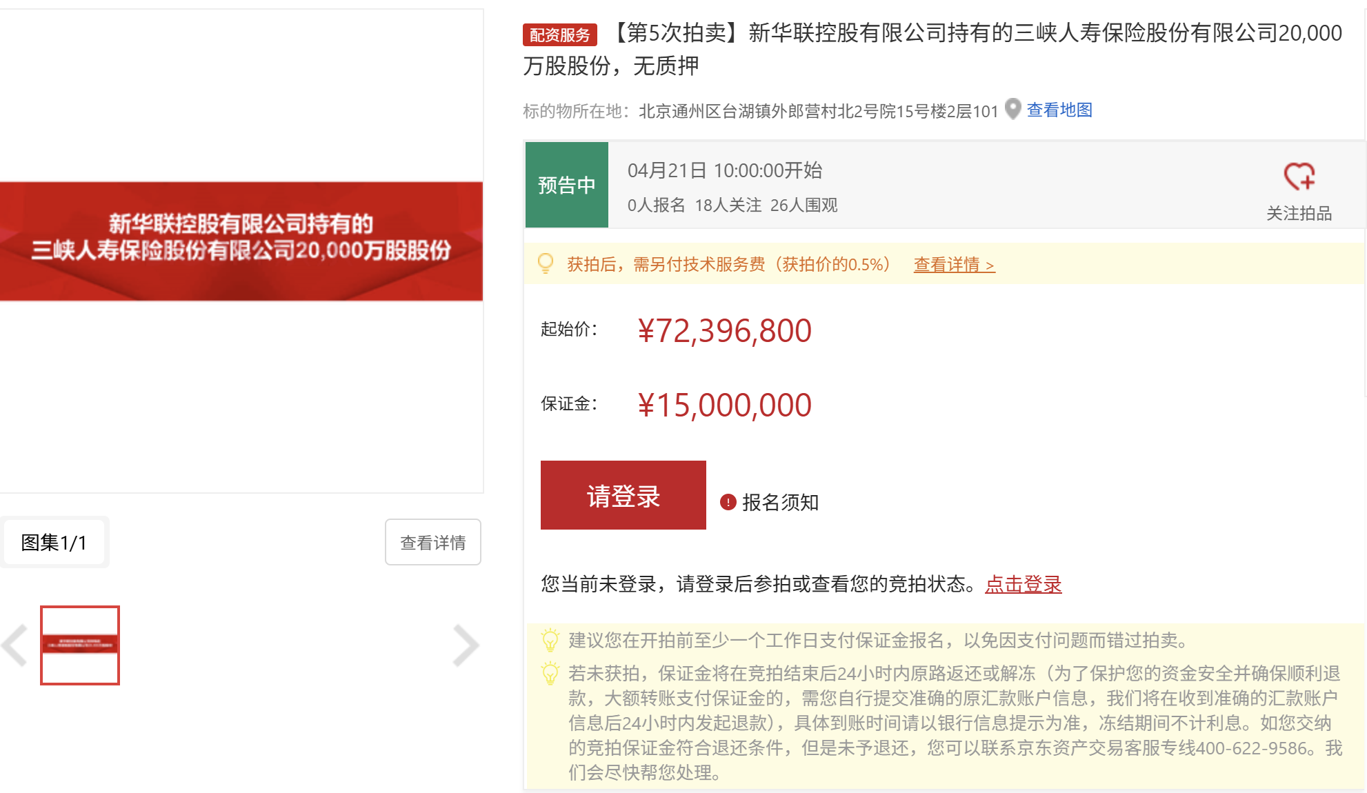 本次拍卖的2亿股股权对应三峡东谈主寿6.59%的股份,为新华联控股握有的一谈无质押股权。若告捷出让,新华联控股将绝对退出三峡东谈主寿股东序列。该笔股权自2026年2月初度在京东拍卖平台挂牌以来,已历经4次拍卖,起拍价从2.02亿元按序下调至1.616亿元、1.2928亿元、1.03424亿元,最终降至7239.68万元,较初度挂牌价已缩水跳跃六成。